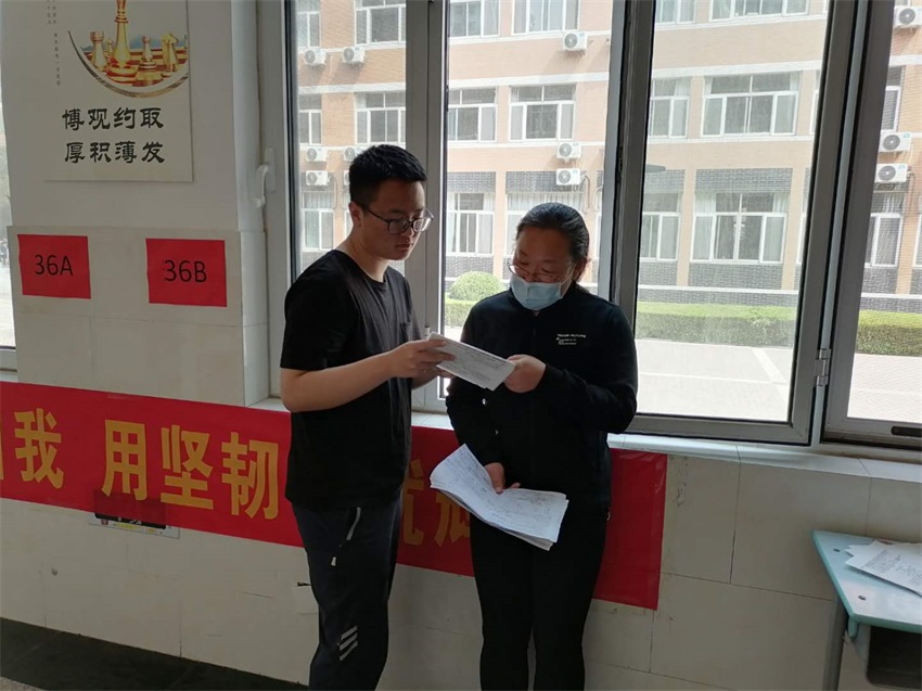他们都是寿光市教学能手,多次荣获学校优秀教师称号。敏于行而讷于言,这次封校住校,夫妇两人识大体,顾大局,没有豪言壮语,唯有任劳任怨,默默付出,带着还在上小学的儿子住进了学校。他们虽然在不同的级部,但却在同一个年级,为着同一个目标在安心教学,努力奉献。