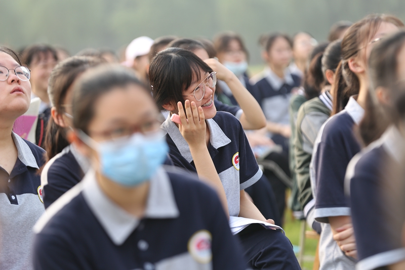 雄壮有力的国歌声响起,全体起立,仰望五星红旗庄严升起,同学们用青春激情迎接青葱年华庄严的人生典礼。
