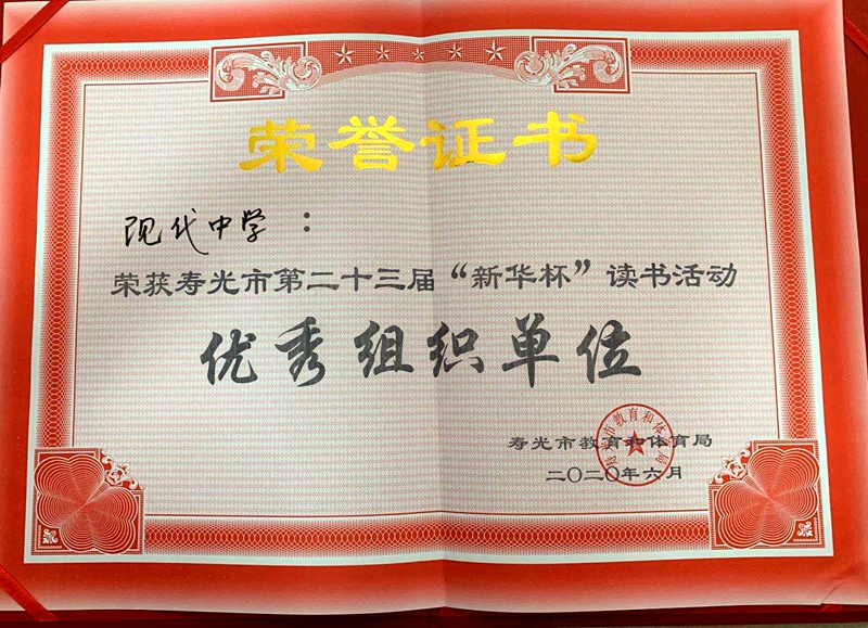 近日,第二十三届“新华杯”假期读书征文活动获奖名单揭晓,寿光现代中学获得“优秀组织奖”,获奖学生和教师人数均居全市普通高中首位。
