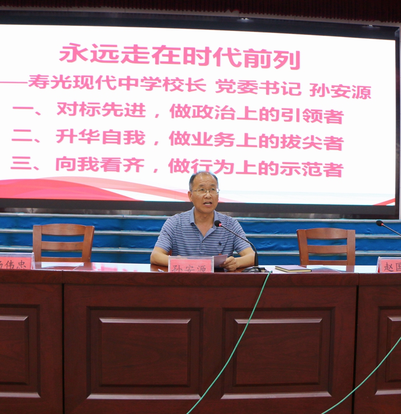 学校党委书记、校长孙安源,为全体党员上了《永远走在时代前列》的精彩党课。党课从“对标先进,做政治上的引领者;升华自我,做业务上的拔尖者;向我看齐,做行为上的示范者”三个方面,与全体党员一起,回顾了中国共产党建党99年来的光辉历程,要求广大党员干部传承优良传统,积极履职尽责,主动担当作为,用仁爱之心和扎实学识,让每一个孩子都能看到未来的希望和光明,为学校大发展、为寿光教育的腾飞贡献我们每一位现代人的智慧和力量。