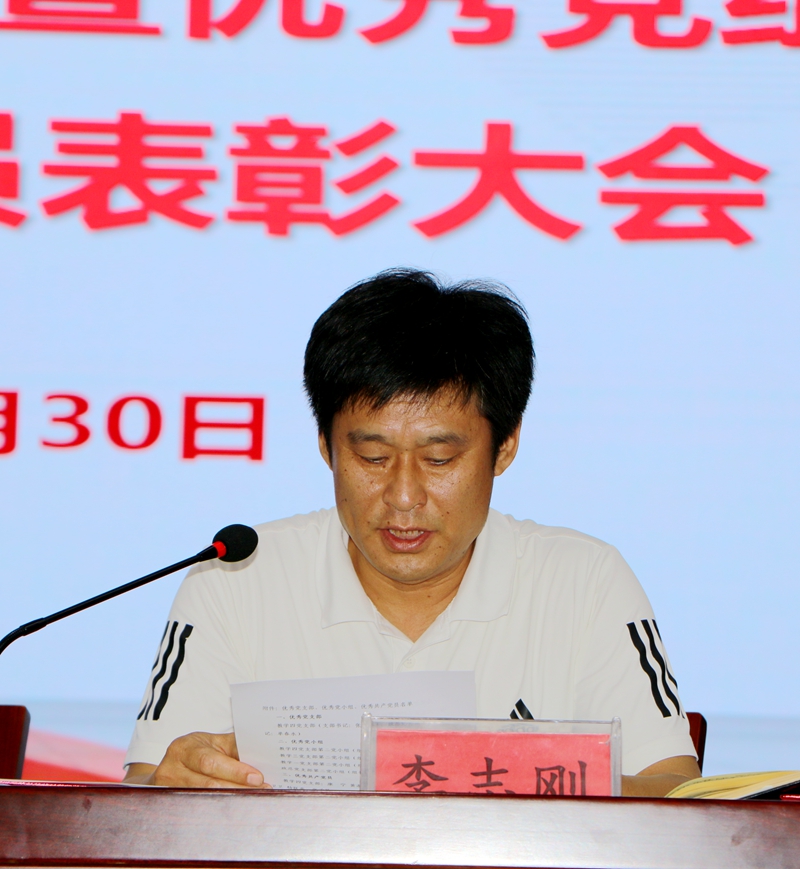 庄严的国歌声响起,全体起立,齐唱国歌。随后,副书记李志刚宣读中共寿光教育工委表彰文件和学校党委表彰文件,对获得上级的表彰的6名优秀党员及学校评选出的2个优秀党支部、4个优秀党小组、39名优秀共产党员进行了通报表彰。获奖党员代表康宁、孙仲圣发言。党委要求,受到表彰的集体和个人,珍惜荣誉、锐意进取,不忘教育初心、牢记育人使命,永远将“教好书育好人”作为毕生追求的伟大事业,在本职岗位上再创佳绩,再立新功。