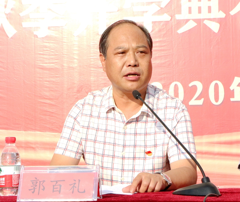郭百礼同志在开学典礼上发表致辞:“企业的发展,让我们感受到人才的重要性。资助学子就是培养人才,我们有责任传递爱心。”