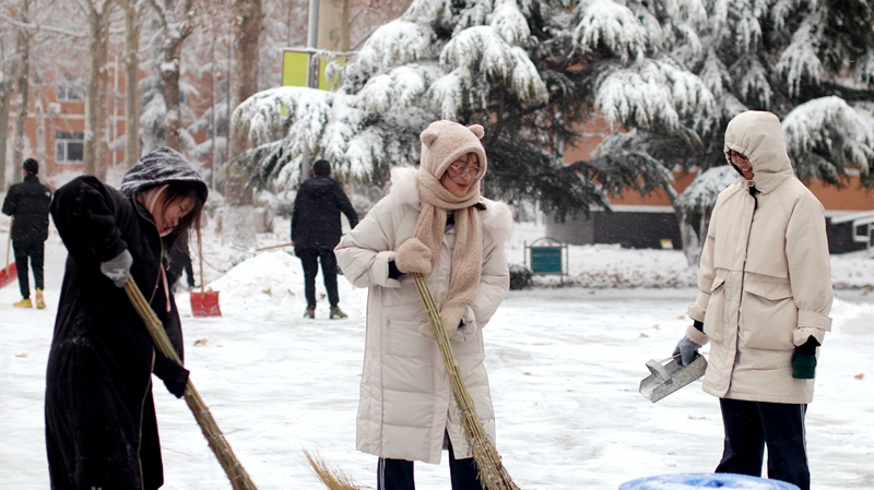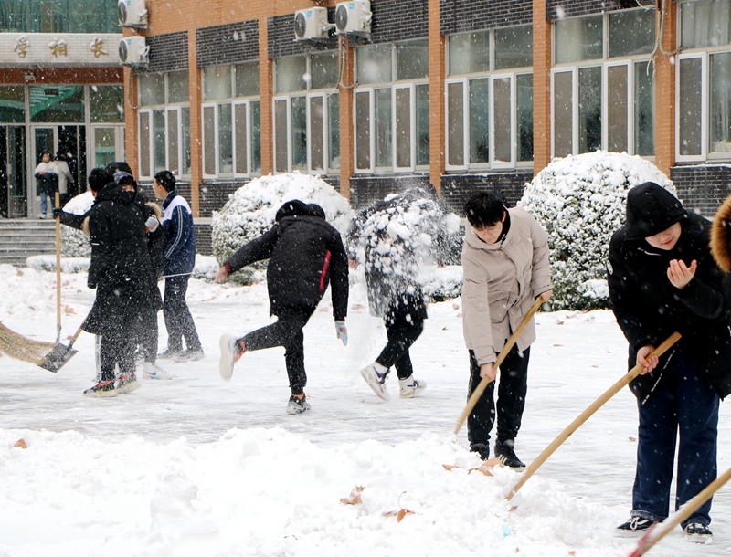 为确保师生出行安全,学校各班在28日下午就以班会、微信群的形式向每一名学子及家长提前播放了大雪天气信息。早晨不到七点,寿光现代中学全体教职工开始进行校园主干道扫雪活动。上午大课间,各班组织学生全面清扫,寒风凛冽,但师生扫雪的热情十分高涨,大家挥动铁锹、舞动扫帚、合作默契,个个精神抖擞、干劲十足,这些身影让人倍感温暖,成为校园里一道亮丽的风景线。
