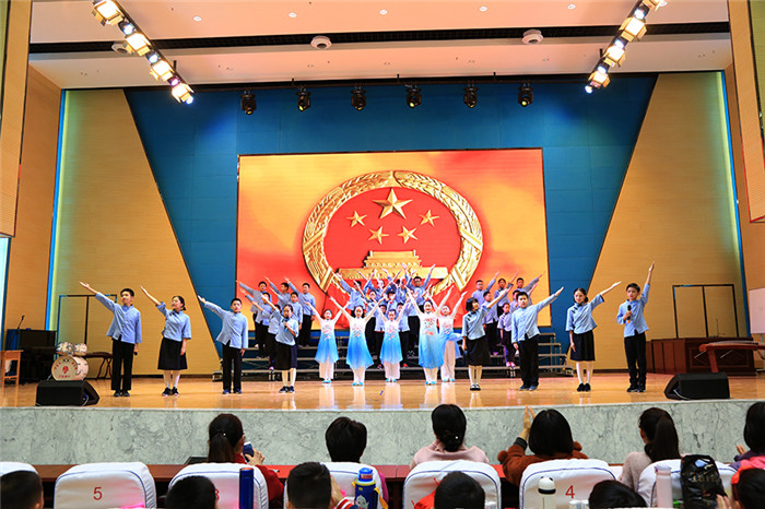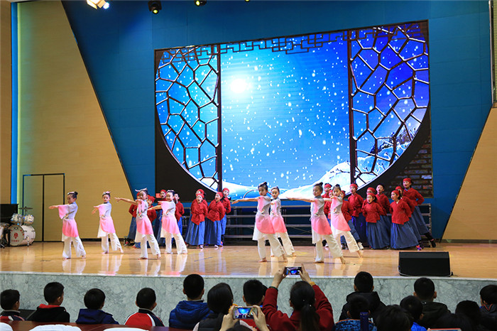 《明日歌》、《少年中国说》、《大学》、《爱莲说》、《君子之道》……老师们自编自导,将大家熟悉的国学经典作品用诵读、歌唱、舞蹈、表演的形式展示,经过学生吟诵与演绎,将诗词与音乐融为一体,每个班级的表演虽各不相同,却无一不展现出学子在深入阅读之后的良好素质与精神风貌。