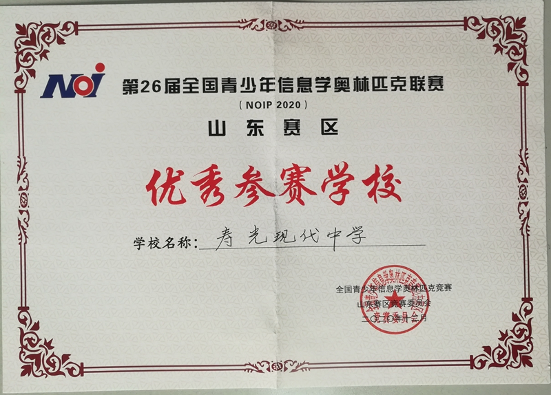 在近两年的信息技术类竞赛中,现代少年火力全开,斩获多项省级、国家级信息技术类竞赛大奖。除以上2021年取得的优异成绩以外,2020年信息技术类竞赛也取得优异成绩:刘明睿同学获信息学奥赛(csp2020)提高组一等奖;杨子涵和冯浩洋两名同学作为潍坊市NOC大赛唯一一支高中队伍代表山东省挺进国赛,获得国家级二等奖的优秀成绩。学校取得的成绩在整个山东赛区遥遥领先,在全国范围名列前茅!