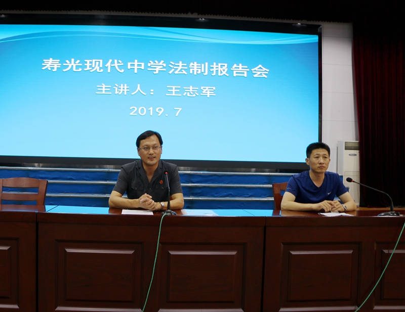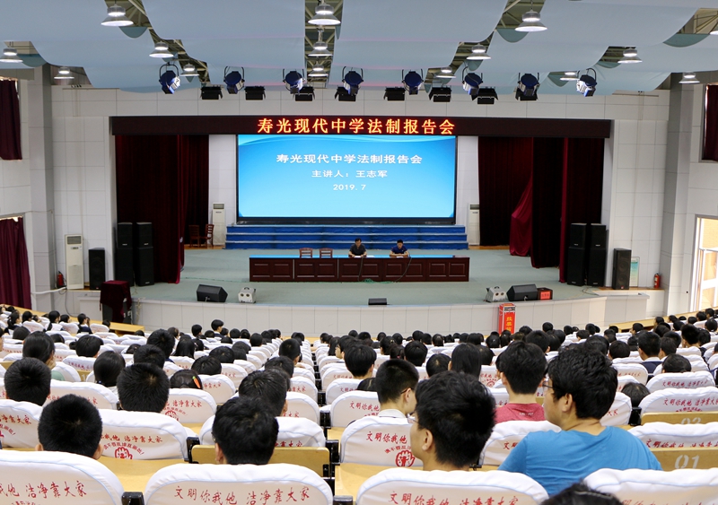 为增强学生法制意识,预防青少年违法犯罪,7月11日上午,寿光现代中学邀请寿光市人民法院审判委员会委员、民一庭庭长王志军到校,开展了以“做阳光守法少年 享快乐健康人生”为主题的法制报告会,受到学生的热烈欢迎。高一年级学生参加了报告会。学生教育处主任王风军主持了报告会。