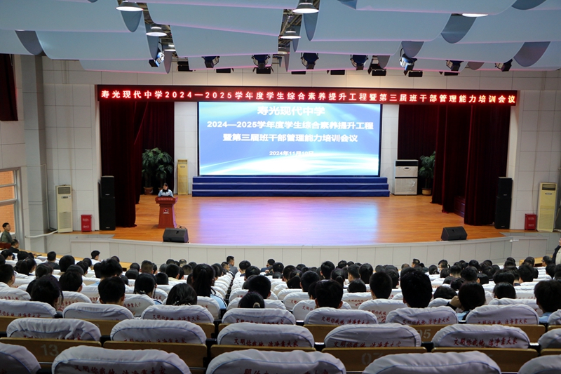 为锤炼学生干部队伍,发挥其在学生中的引领作用,促进学校与班级管理升级,11月10日下午,寿光现代中学举行2024—2025学年学生综合素养提升工程暨第三届班干部管理能力培训会。学校党委书记丁超德及部分党委成员、全体班主任、各班班干部参加会议。高一35班来校臣同学主持会议。