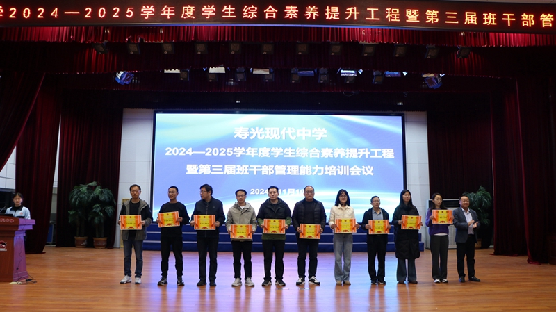 会上,主持人宣读了2024-2025学年第一学期“优秀班干部”名单,并对51个“开端优秀班级”予以通报表扬。丁超德书记及班子成员吴福海、李涛、张会智、刘晓东、刘鹏为获奖的班主任和班干部颁奖。