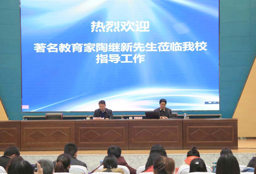 为进一步加强我校教育工作,提高教师队伍的素养。2月18日下午,现代中学东校区特邀著名教育专家、《当代小学生》主编、中国教育学会传统文化教育中心副主任、山东省语言文字工作者协会副理事长陶继新先生,为全体教职工作题为《高效教学的道与术》的指导讲座。