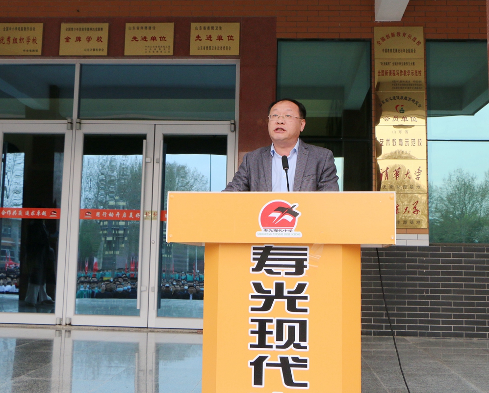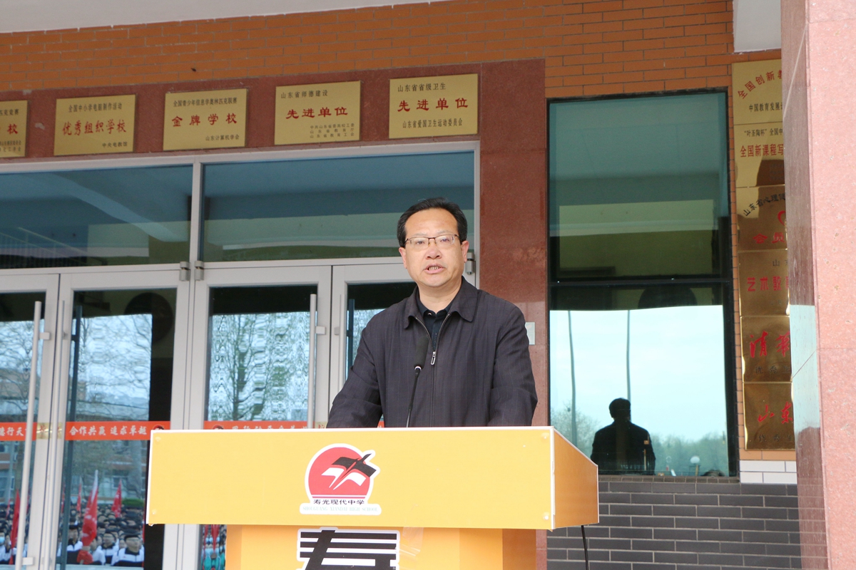 副校长丁超德传达了“举办寿光现代中学首届班主任节”的决定。他希望广大师生能以本次班主任节为契机,在这个美好的春天,迸发出蓬勃向上的动力,师生同向同心,开辟新赛道,打造新优势,全力助推学校教育再上新台阶、铸就新辉煌!