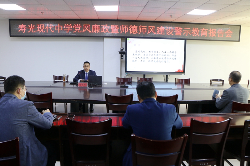 为深入贯彻落实寿光市教育系统党风廉政暨师德师风建设“百日提升行动”各项工作,进一步加强全体干部教师的意识形态教育和师德师风建设,4月19日上午,寿光现代中学邀请寿光市教体局党建科邵明颖副科长到校,开展“遵守纪律规范,遵守职业道德,做一名合格的人民教师”警示教育专题讲座。学校校长、党委书记孙安源、中层干部及部分教职工代表参加了集中学习。