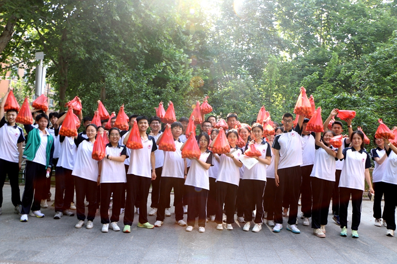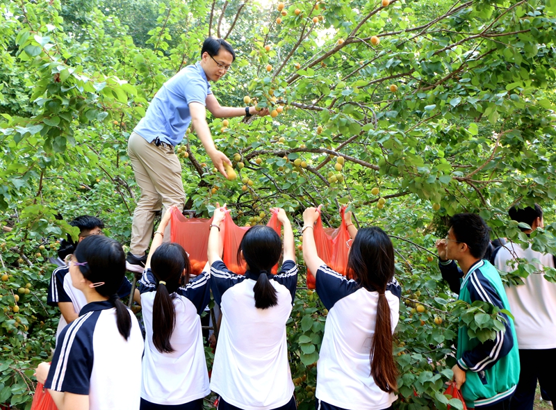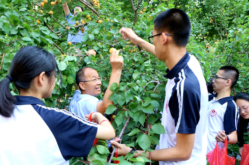 高考前夕,现代苑里的杏树枝繁叶茂,金灿灿的果子挂满枝头,向师生诉说着丰收的喜悦。6月5日清晨,孙安源校长和副校长丁超德、张建波带领高三师生一起采摘“杏福果”,并将“杏运” 传递到每一位同学手中,寓意“杏运”“杏福”时刻相随。同学们也把摘下的鲜杏恭敬地送给老师,感谢他们的辛勤培育。“杏运树”下欢歌笑语,有效调节了高考前的紧张氛围,给师生们带来了欢乐和信心。