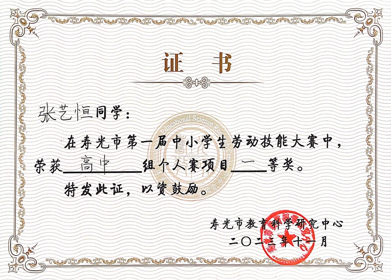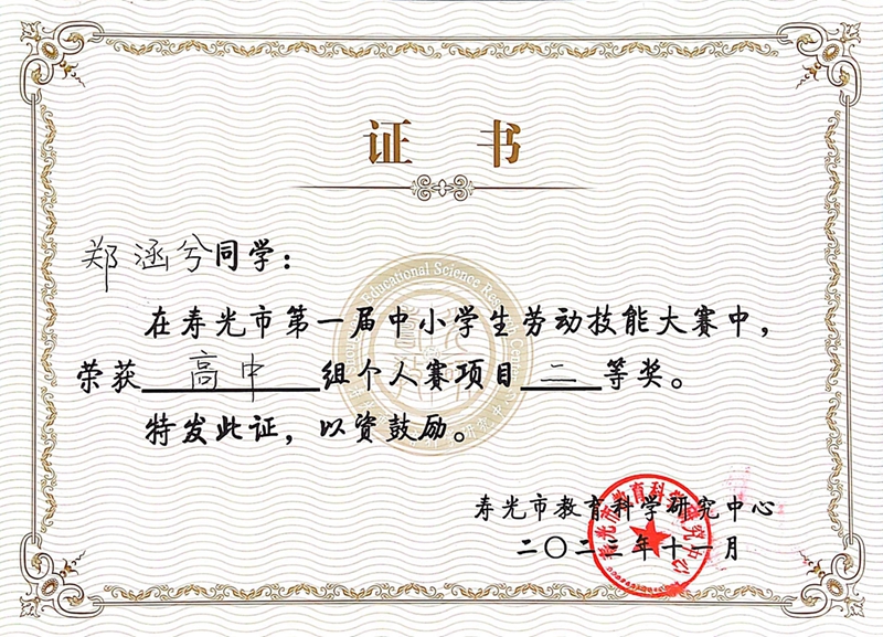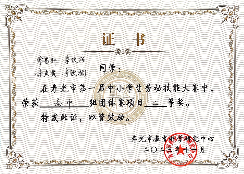 为全面落实立德树人根本任务,帮助学生树立正确的劳动观念,提高动手实践能力,推动学校劳动教育,近日,寿光市教体局举办了2023年寿光市第一届中小学生劳动技能大赛。寿光现代中学多名师生积极参与、充分准备,最终荣获高中组个人赛一个单项一等奖,一个单项二等奖,高中组团体赛两个单项二等奖的好成绩,五位老师获优秀辅导教师奖。
