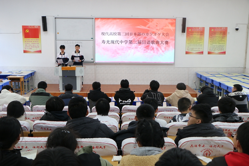 为扎实推动学校双外语教学,丰富同学们校园文化生活,激发同学们日语学习热情,1月3日下午,寿光现代中学举行了“第二届日语歌曲大赛”。