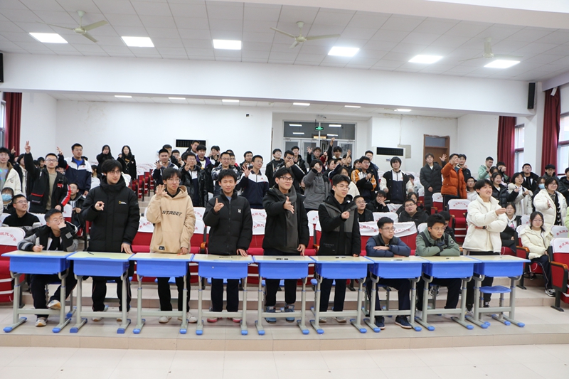 大赛以一首富有节奏的《リセット》开场,一首《恋愛サーキュレーション》将全场气氛推向高潮,最后一曲《melody》嗨动全场,大赛在同学们的恋恋不舍中落下帷幕。大赛还设置了互动的游戏环节,“全场和老师进行石头剪刀布,经过几轮游戏,最终战胜老师的三名同学获得ガイドブック的小奖品。”充分调动了学生学习日语的热情,同学们兴致昂扬,尽情欢笑。
