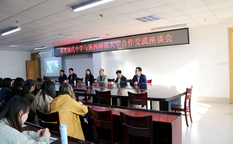 10月18日上午,陕西师范大学20名大学生,在教授李艳的带领下来寿光现代中学交流座谈。学校党委书记、校长孙安源及校领导杨伟忠、丁超德、张建波、张法国会见了来访客人,双方进行了座谈交流。