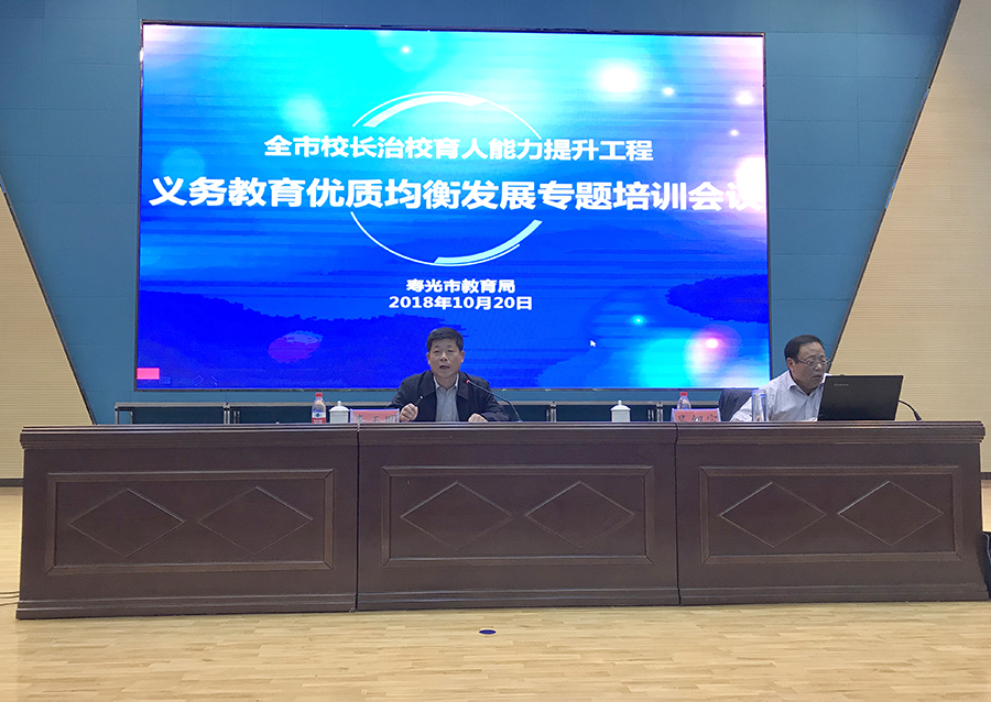 为进一步促进全市广大教育干部迅速转变教育理念,提升治校育人能力、提高学校精细化管理水平、推动学校内涵、特色发展。10月20日下午,“寿光市校长治校育人能力提升工程—义务教育优质均衡发展”专题培训会议在寿光现代中学东校区召开。市教育局党委书记、局长李玉明,有关班子成员,科室负责人,全市各镇(街区)教育学区主任、分管副主任,义务教育段各学校校长及教导、政教、总务等部门负责人等550余人参加会议。 听、细心记录推进义务教育均衡发展的相关标准和要求,为实际工作中具体落实奠定了理论基础。