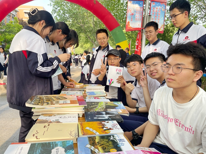 4月28日,寿光现代中学联合新华书店、天下书香等书商举办主题书展活动,邀约全校师生同品共读。书展集中展示了党史、文化、社科、国学、励志等内容的图书,同时展示了与学科相关的书籍和教辅材料,共计2000余册。同学们有的精心挑书,有的埋头看书,有的结伴讨论,处处展现着现代师生对知识的渴望和对书籍的热爱。
