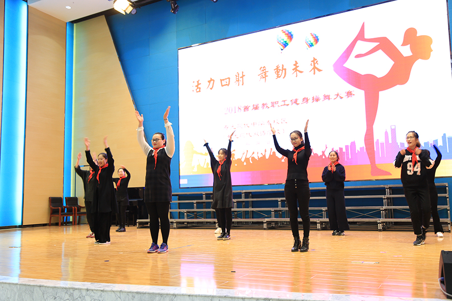 各个年级老师们精心设计,用新颖别致的编排,整齐而又充满活力的动动作,营造出活泼、积极向上的朝气和激情,彰显出不凡青春飞扬的活力,引来台下学生们尖叫连连、掌声不断,为老师们疯狂打Call!