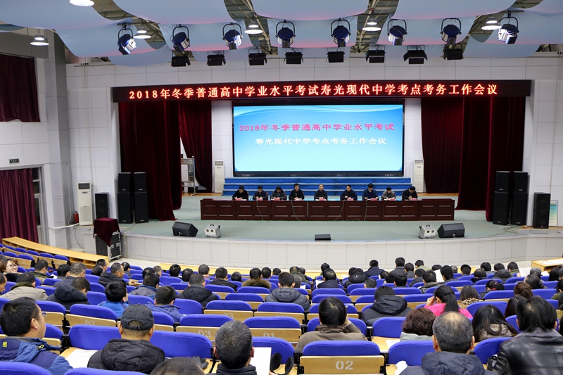 为做好2018年冬季普通高中学业水平考试工作,1月10日晚,寿光现代中学考点在学校报告厅召开2018年普通高中学业水平考试考务会议。校长、党委书记孙安源带领校级班子成员出席会议,各涉考教师参会。会议由副校长赵国田主持。