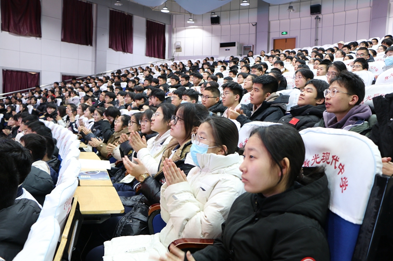 为充分发挥优秀毕业生的榜样示范作用,引导学弟学妹们进一步明确学习目标,端正学习态度,1月31日下午,寿光现代中学名生励志报告会在学校报告厅举行。学校优秀毕业生代表张羽飒(清华大学)、张鹏飞(山东大学)、王佳(山东大学)、刘济恺(中国石油大学) 、李佳奕(华东师范大学) 、吴昱辰(中南大学)、李昊阳(南方科技大学)、冯智超(北京交通大学)、孙传智(本科中国社会科学院大学,研究生复旦大学)等9名考入“双一流”大学的现代毕业生回到母校,与高一年级的学弟学妹们就高中阶段的学习心得、大学的学习生活进行了分享、交流。高一四部全体同学聆听报告会。