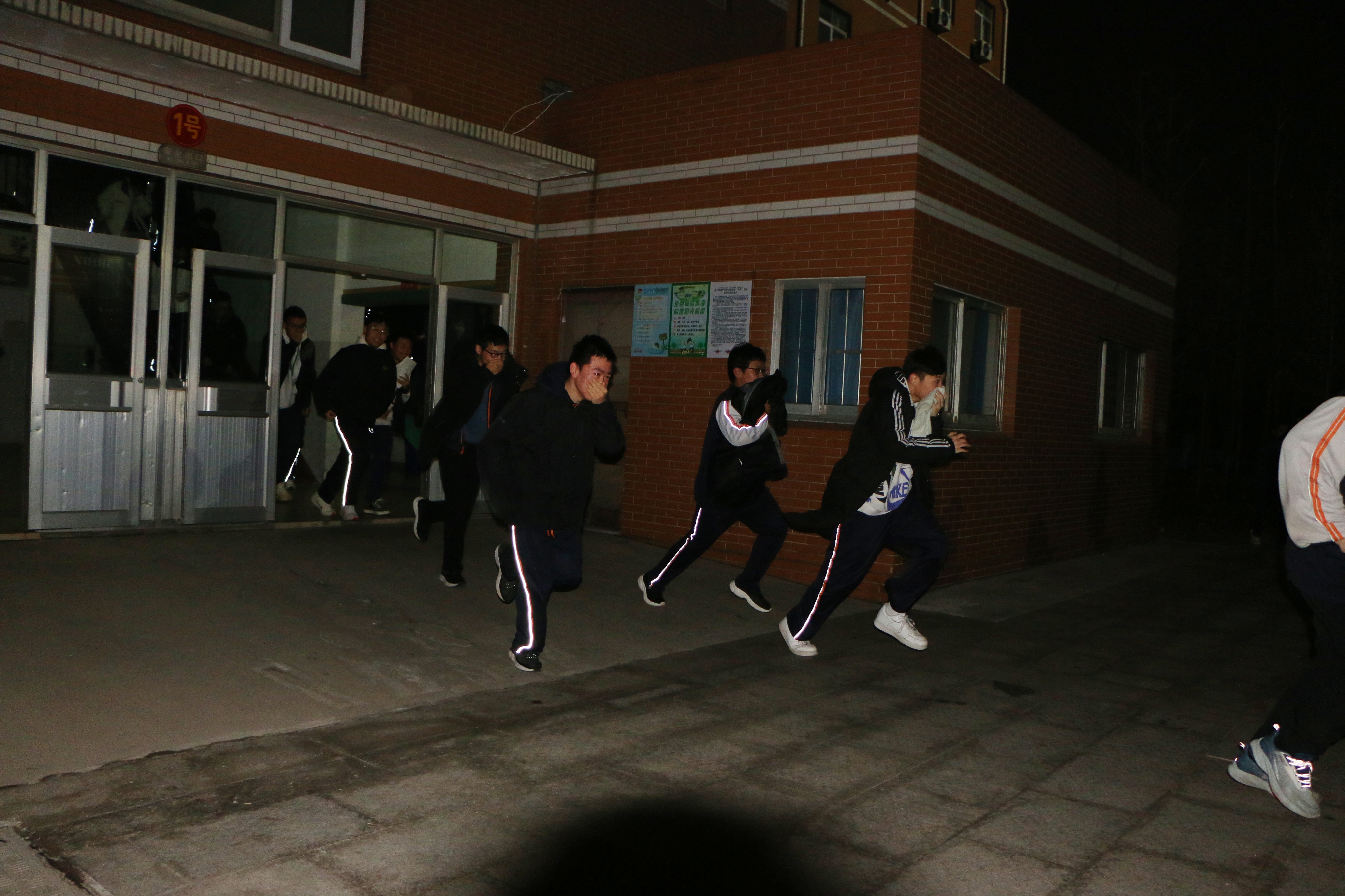 本次演练分别在夜间和白天举行,模拟学生在宿舍、教室的实景情况。火警报警声在校园响起,演练正式开始。校领导得知信息后,立即启动消防安全紧急预案,发播紧急求援疏散命令,同时向上级部门报告情况。伴随着警报长铃声,班主任和相关老师在第一时间内到达指定地点,指挥和组织学生用湿巾捂住口鼻,以就近安全出口撤离为原则,有序地按照指定三条路线疏散,在指定位置集合后,班主任清点本班学生人数。本次活动中,全体师生做到了撤离快速、安全、合理、有序。