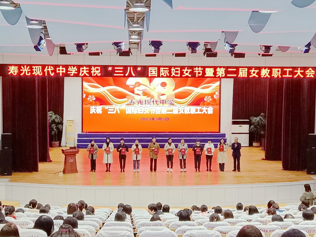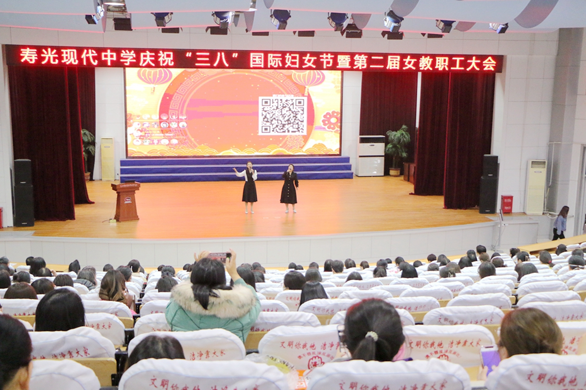 3月5日晚上,寿光现代中学庆祝“三八”国际妇女节暨第二届女教职工大会在学校报告厅顺利召开。学校全体女教职工参会,学校校长、党委书记孙安源及校级班子成员出席会议。活动由燕彩云主任主持。