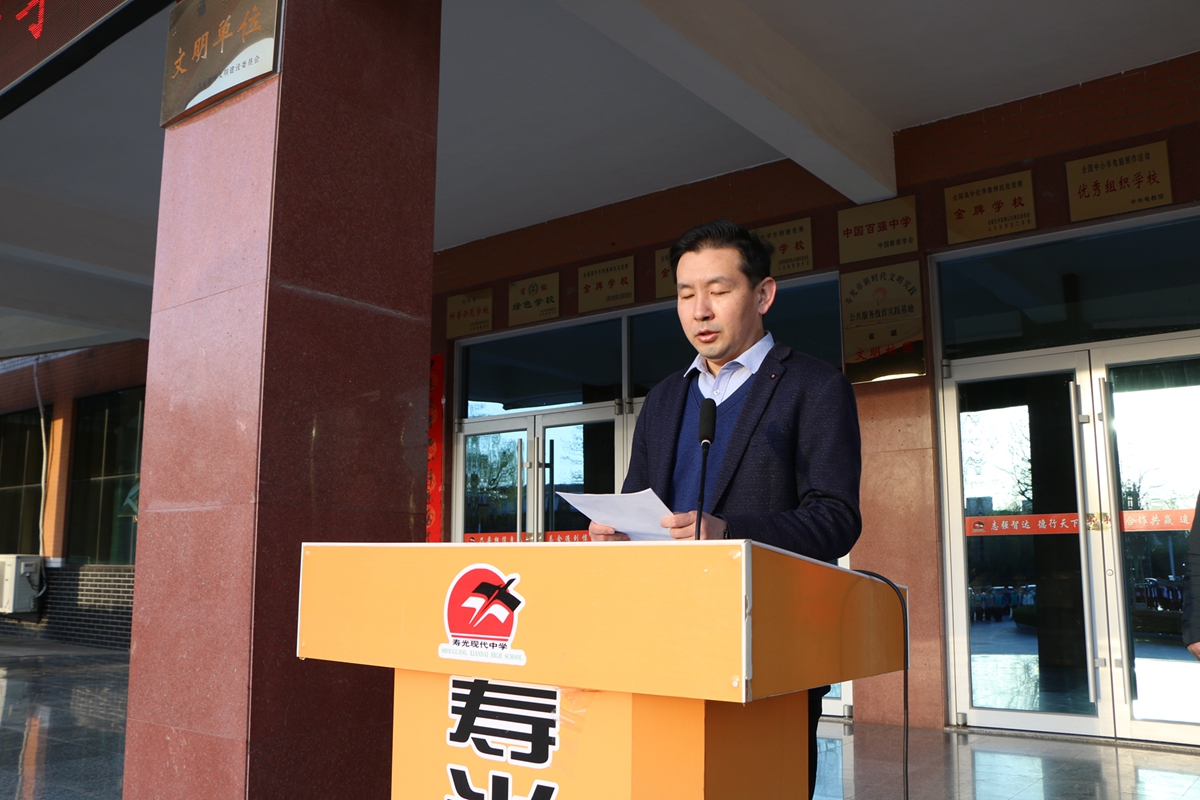 伴随着徐徐春风,3月13日早上,寿光现代中学强基年级全体师生在润德楼广场举行升旗仪式。活动由强基高二3班孙明辉同学主持。