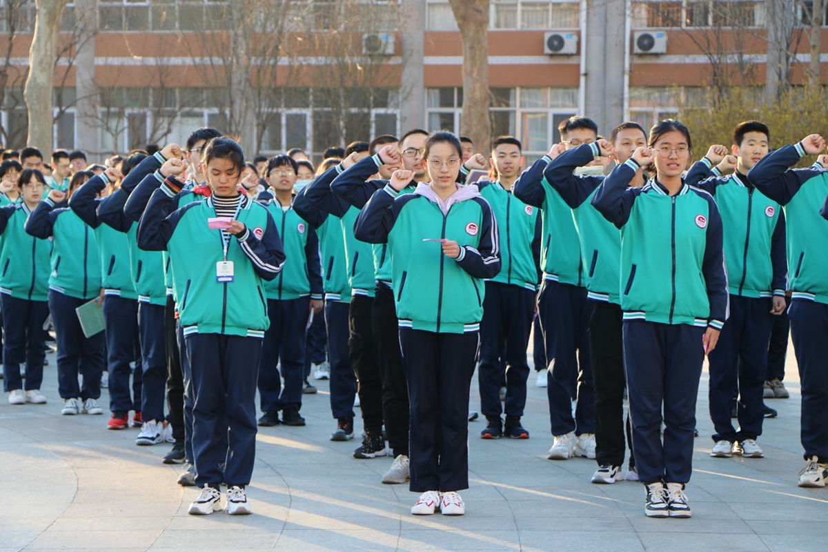 强基高一1班张一鸣同学带领全体同学庄严宣誓。洪亮的声音,饱满的姿态,展现出同学们团结一心、持续奋进的决心。