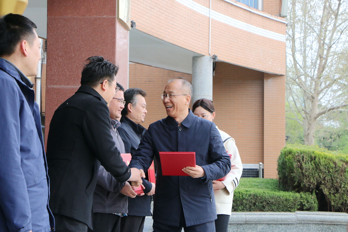 学校领导孙安源、张建波、张法国、赵泽绪、唐琳、张会智、李涛为获奖班主任颁奖。希望受到表扬的优秀班主任珍惜荣誉,爱岗敬业,勤奋工作,为现代中学教育事业的蓬勃发展再立新功;希望全体教师对标先进,积极作为,奋发有为,为寿光教育事业的高质量发展做出应有贡献。