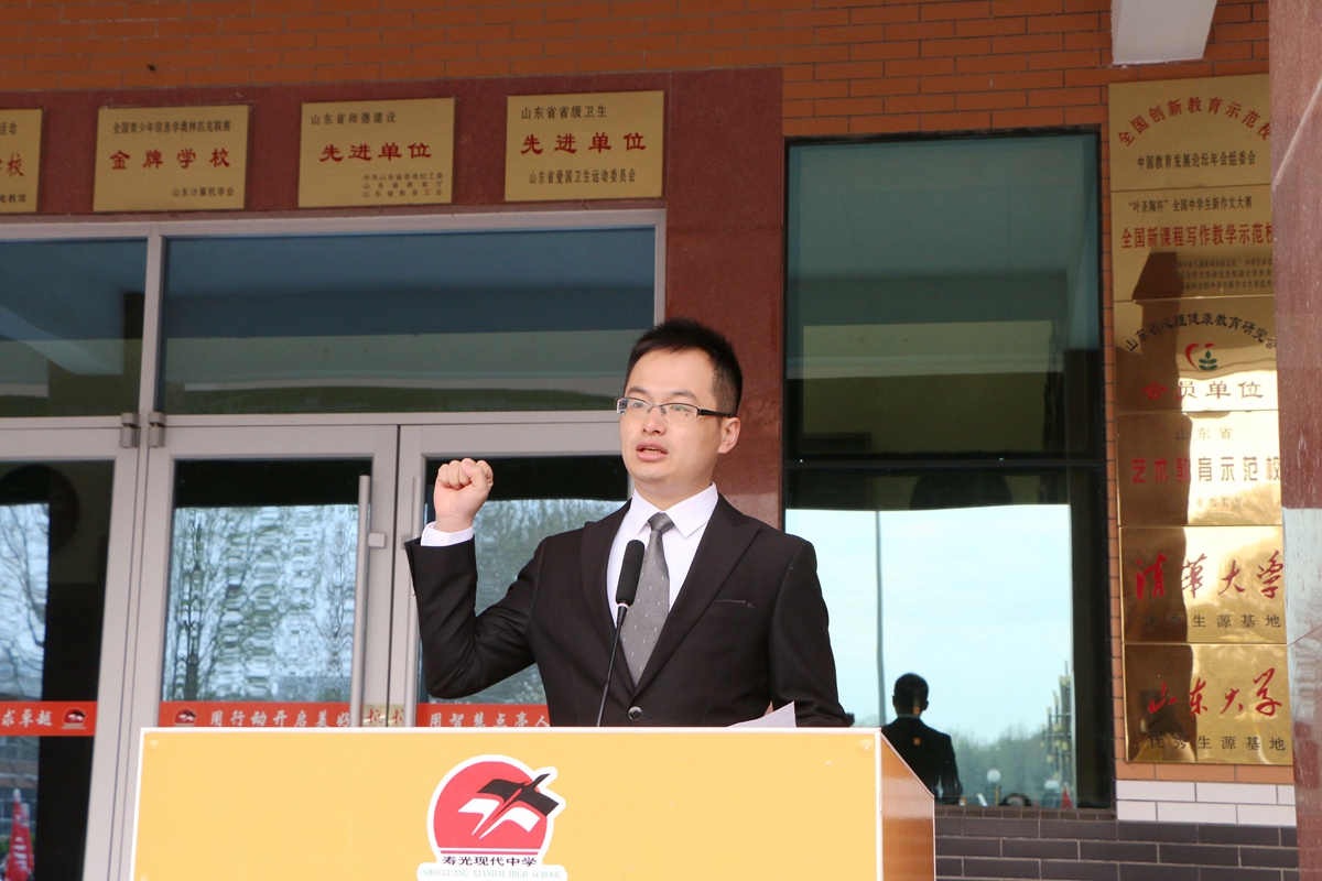 副校长丁超德传达了“举办寿光现代中学首届班主任节”的决定。他希望广大师生能以本次班主任节为契机,在这个美好的春天,迸发出蓬勃向上的动力,师生同向同心,开辟新赛道,打造新优势,全力助推学校教育再上新台阶、铸就新辉煌!