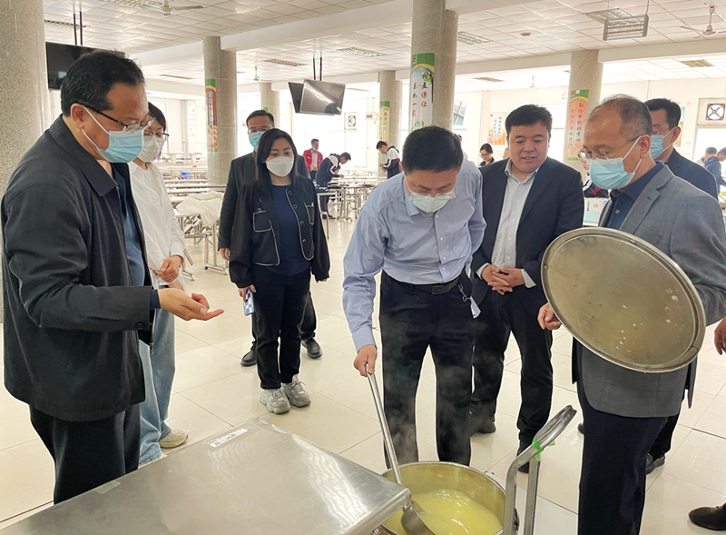 学校校长、党委书记孙安源邀请家委会代表走进餐厅进行实地查看,并恳请家长提出宝贵的意见建议。家委会代表对餐厅食品品类、餐具消毒、操作间卫生、加工流程等情况进行了解并给予充分好评。