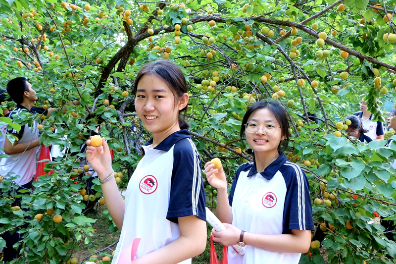 高考前夕,现代苑里的杏树枝繁叶茂,金灿灿的果子挂满枝头,向师生诉说着丰收的喜悦。6月5日清晨,孙安源校长和副校长丁超德、张建波带领高三师生一起采摘“杏福果”,并将“杏运” 传递到每一位同学手中,寓意“杏运”“杏福”时刻相随。同学们也把摘下的鲜杏恭敬地送给老师,感谢他们的辛勤培育。“杏运树”下欢歌笑语,有效调节了高考前的紧张氛围,给师生们带来了欢乐和信心。