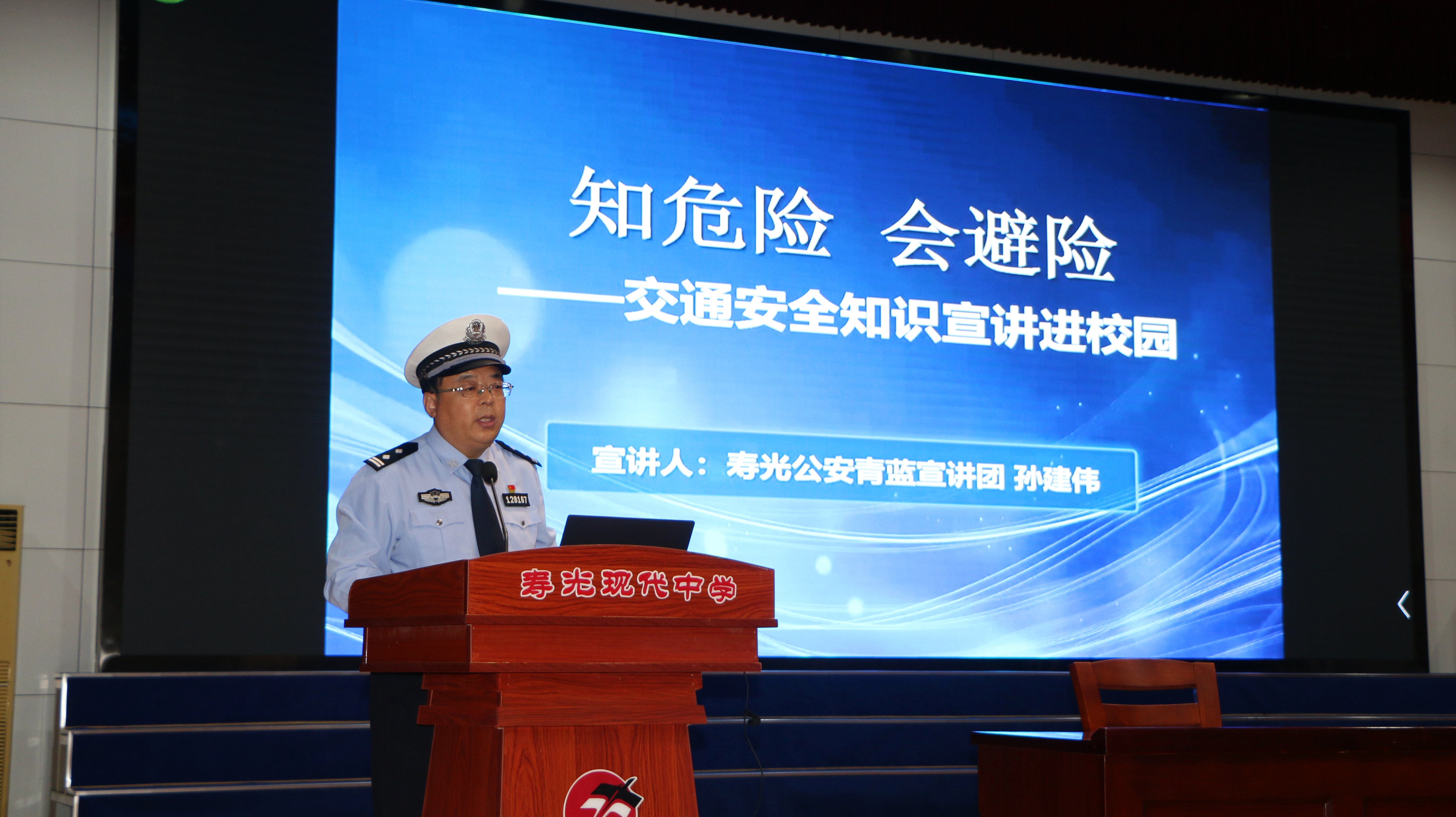 为增强学生安全防范意识,提升自我保护能力,9月14日,现代中学邀请寿光公安“青蓝宣讲团”成员进校园,开展主题宣讲活动。高一年级部分师生参加活动。