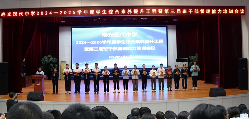 为锤炼学生干部队伍,发挥其在学生中的引领作用,促进学校与班级管理升级,11月10日下午,寿光现代中学举行2024—2025学年学生综合素养提升工程暨第三届班干部管理能力培训会。学校党委书记丁超德及部分党委成员、全体班主任、各班班干部参加会议。高一35班来校臣同学主持会议。