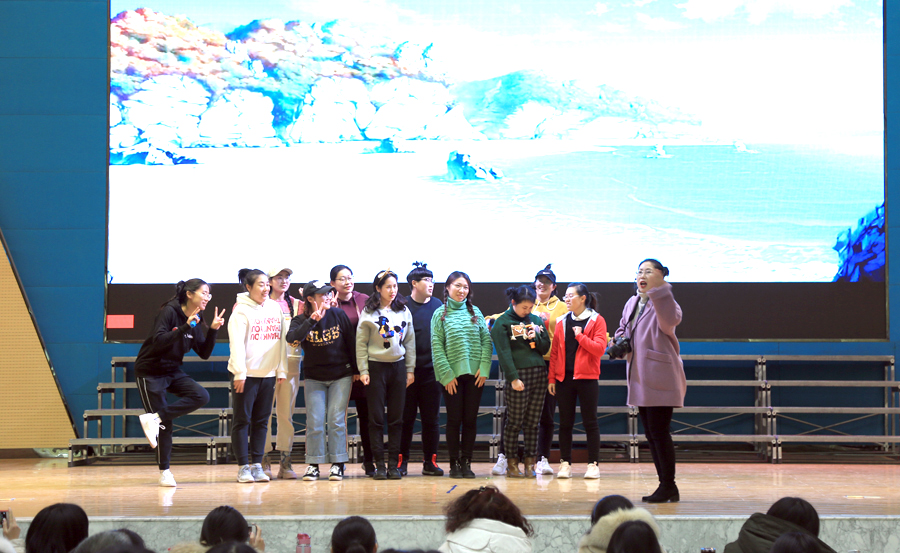 分享是快乐的,也是多样的,老师们没有选择简单的将自己的思悟侃侃说出,而是通过朗诵、小品、舞台剧的形式,或读或诵,或演或悟,让礼堂氤氲浓浓书香。