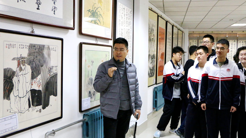 学校积极推行“美育+活动”“美育+学科”的创新教学模式,分批次组织学生前往艺术楼参观学习。在“名人书画室”中,收藏有国家级、省市级书画名家作品以及师生优秀作品百余幅。这些作品题材丰富多样,个性鲜明独特,气韵生动传神,笔墨纵横之间尽显深厚的文化底蕴与非凡的艺术魅力。