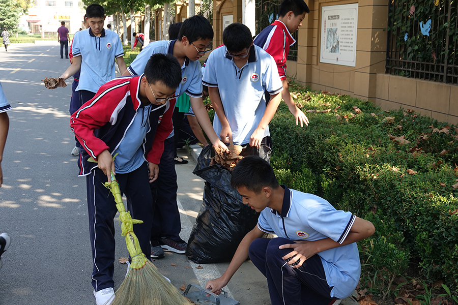 为了让行为习惯养成月实践落到实处,迎接祖国69岁华诞9月26号、27号两天,全校各年级先后开展“弯腰捡垃圾,洁净校园人人有责”义务劳动活动,对校园内外的垃圾进行了彻底地清理。
