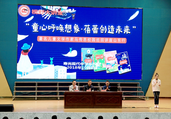 为更好地培养学生阅读习惯,激发阅读兴趣,调动创作积极性,10月8日下午,著名儿童文学作家马传思校园巡回讲座山东行走进寿光现代中学东校区,为三四五年级师生带来了一场题为“如何打开想象力的魔盒” 的生动讲座,和学生分享了他的写作技巧。