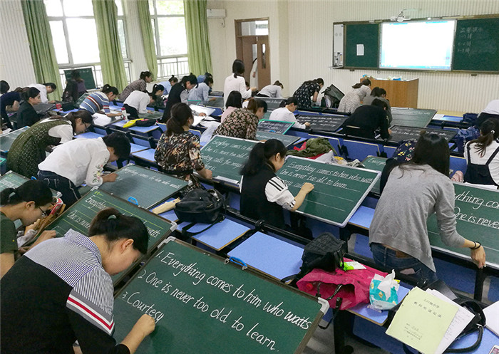 5月15号到5月16号两天,寿光市小学综合科和英语科教师基本功大比武在现代中学东校区举行。本次比赛分两个阶段,第一阶段为20分钟的粉笔字书写,老师现场书写固定内容的粉笔字和英语板书;第二阶段为演课比赛,老师们在规定的10分钟内模拟上课。