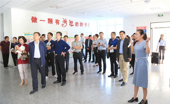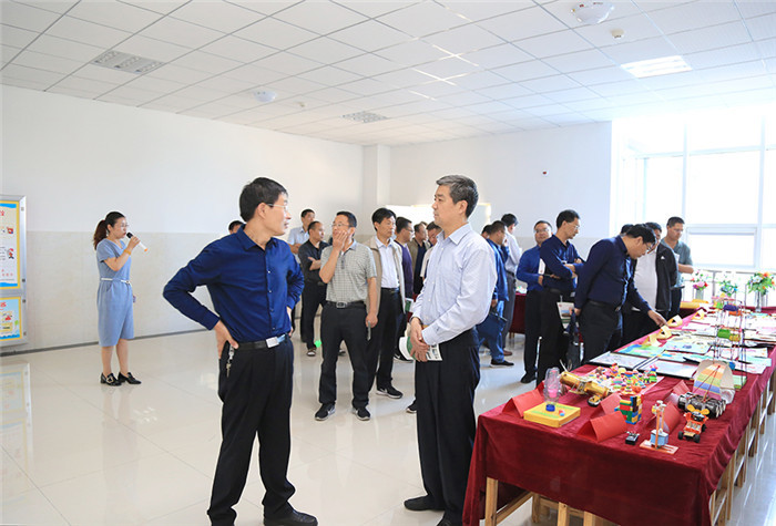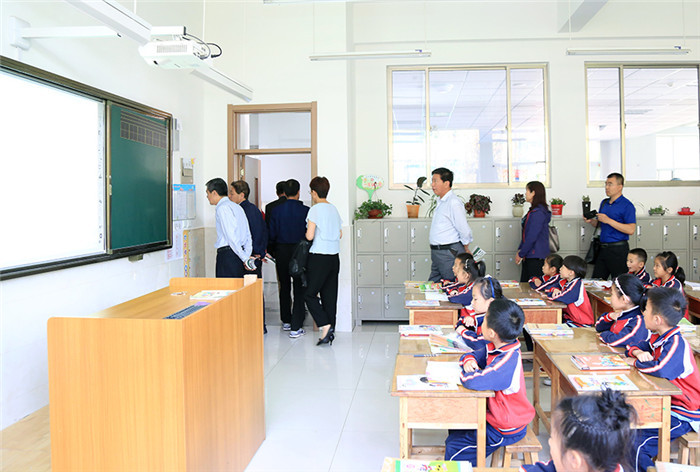 现代中学东校区徐翔副校长向参观领导介绍了我校建校以来的发展情况。领导一行参观了求真楼小学教学楼和崇文楼功能教室,一年级英语口语自然拼读课,三、四、五年级双线英语课程以及社团孩子们天马想空的创意想象、学校的文化建设中传统文化和三生文化两条主线,以及突出学生是校园文化展示主角的理念得到了参观领导的肯定。