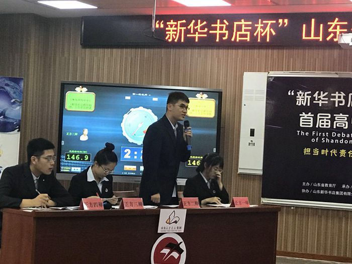 寿光现代中学辩论队选手的清晰的思路、严密的逻辑、思辨能力以及儒雅的辩风,得到了评委和现场观众的一致好评。