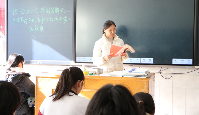 这一年,她身负双重身份:既是高三毕业班的语文老师,也是一位高三学子的母亲。两副重担压在肩上,她却把每一份责任都扛得稳稳的。作为备课组长,她牵头做分层教研,给不同基础的学生量身定制学习方案;作为老师,她伏案批改每份作业,红笔圈出亮点、标注改进方向,对学生的疑问耐心解答,照顾学生就像照顾自己的孩子一样细心。夜幕降临,她转身回归母亲的角色,陪孩子梳理知识点,用教师的智慧与母亲的温暖,点亮另一盏灯。