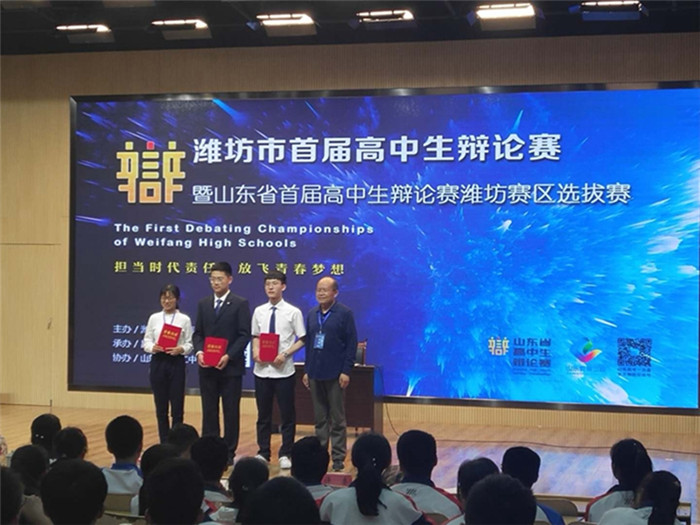 5月5日,寿光现代中学辩论队在潍坊市首届高中学生辩论赛暨山东省首届高中生辩论赛潍坊赛区选拔赛中,以全胜的战绩获得一等奖,并将代表潍坊市角逐山东省首届高中学生辩论赛;李汪洋同学被评为最佳辩手。