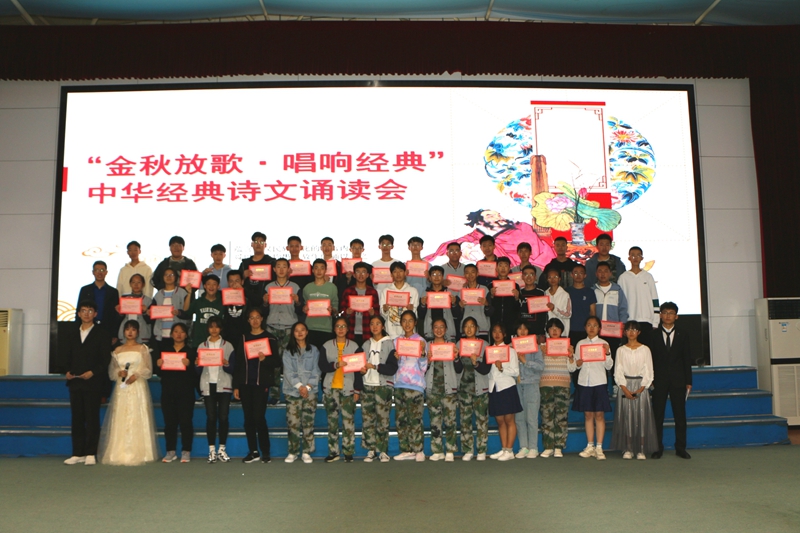 比赛中,有激情满怀的《少年中国说》《满江红》,有娓娓道来的《你是人间的四月天》《雨巷》,有热情豪迈的《祖国啊,我亲爱的祖国》……同学们的诵读声铿锵有力,响彻校园,韵味十足,声声入心,引来现场阵阵掌声。