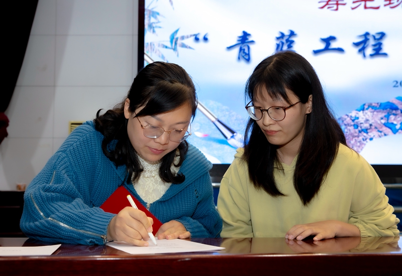 “青蓝工程”青年教师团队是学校教师队伍的新鲜力量,他们风华正茂、思维活跃,教学有新招,工作有闯劲。徒弟代表董丹丹表态,将细心、诚心、虚心、专心学习优秀教师精湛卓越的教艺和奉献担当精神,尽快成为教学能手,尽早成为骨干脊梁。
