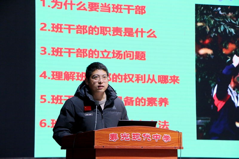 学生教育处副主任徐占峰围绕“如何做一名出色的班干部”这一主题,对全体班干部作管理能力培训。徐主任从“为什么要当班干部”“班干部的职责”“班干部的立场”“当班干部的意义”“应具备的素养”“具体工作方法”等6个方面,深入细致讲解了新时代班干部必备的能力与素质,为班干部传授经验技巧,明确班级管理方向和责任。