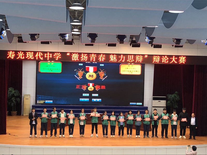 学校党委委员、高二年级负责人赵泽绪、吴福海分别为冠军队、亚军队颁发奖状,此次辩论赛在热烈的掌声中圆满落下帷幕。