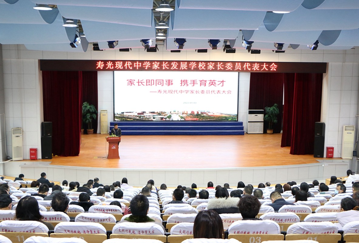 “家庭是人生的第一所学校,家长是孩子的第一任老师,要给孩子讲好‘人生第一课’,帮助扣好人生第一粒扣子。”习近平总书记在全国教育大会上以“四个第一”对家庭教育进行了高度概括。作为全市家校共育的忠实践行者,寿光现代中学提出了“家长即同事 携手育英才”的家校共育理念,坚持“以生为本、开门办学”的原则,紧跟国家政策导向,赋能教育长足发展,使得学校家庭教育工作一直走在全市最前列。新年伊始,备受社会关注的《家庭教育促进法》正式实施,在这个重要时间节点,学校高瞻远瞩,开拓创新,召开寿光现代中学家长发展学校家长委员代表大会,借家委会之力,凝家校社之心,共同推进家庭教育工作稳中有进、蓬勃发展、跃然升华。