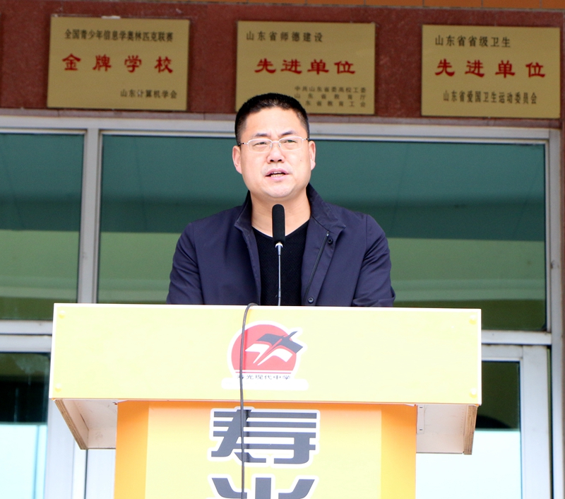 4月27日清晨,寿光现代中学升旗仪式在学校广场举行,学校部分党委会成员、高一一部、二部全体师生参加了升旗仪式。高一一部主任王安辉主持仪式。